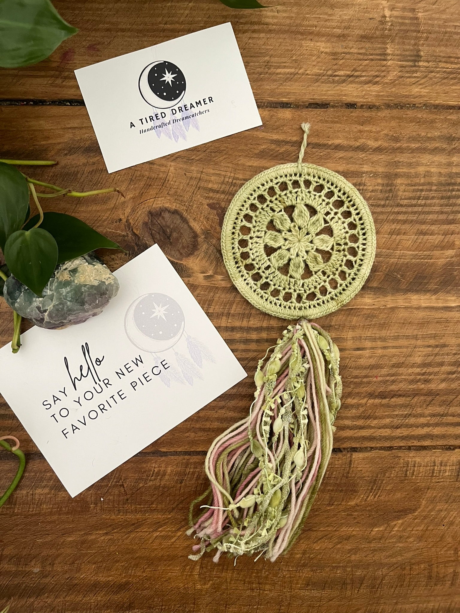 Inspired by the soft hues and natural beauty of an English garden, these hand-crocheted dreamcatchers bring a touch of tranquility and artistry to your space. Each dreamer is meticulously crafted using hand-dyed alpaca yarn, creating a delicate and intricate design that feels as luxurious as it looks.