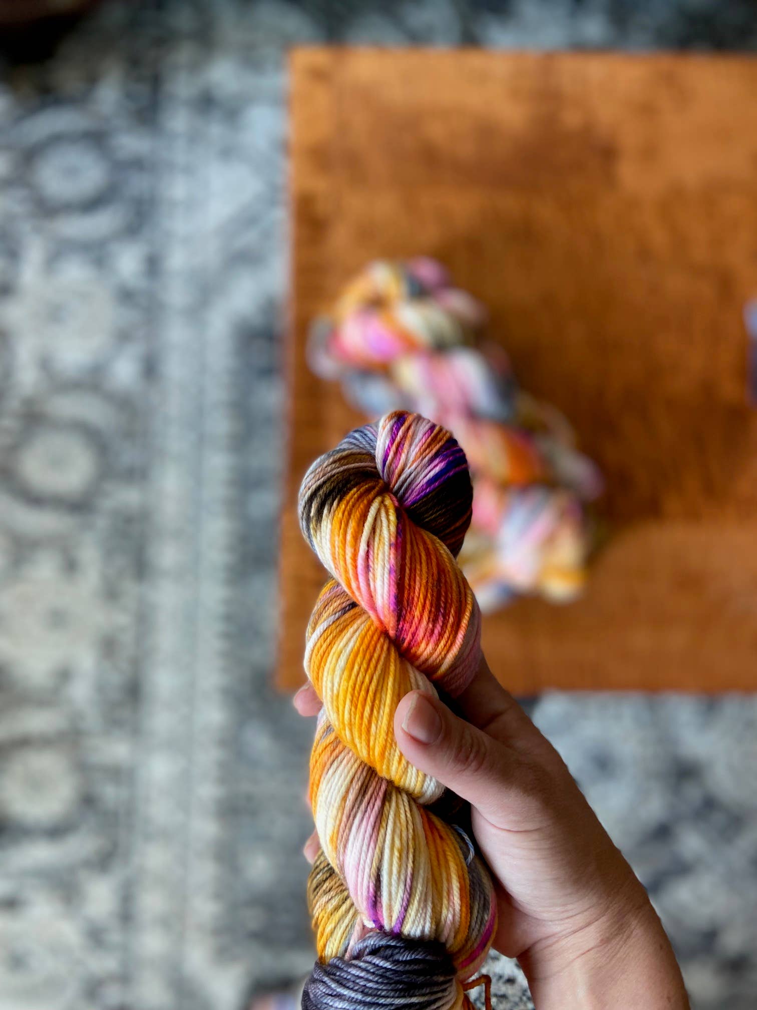 A modern, fun fall colorway! All yarn is hand dyed in small batches - each hank is unique and may vary slightly from our photos.